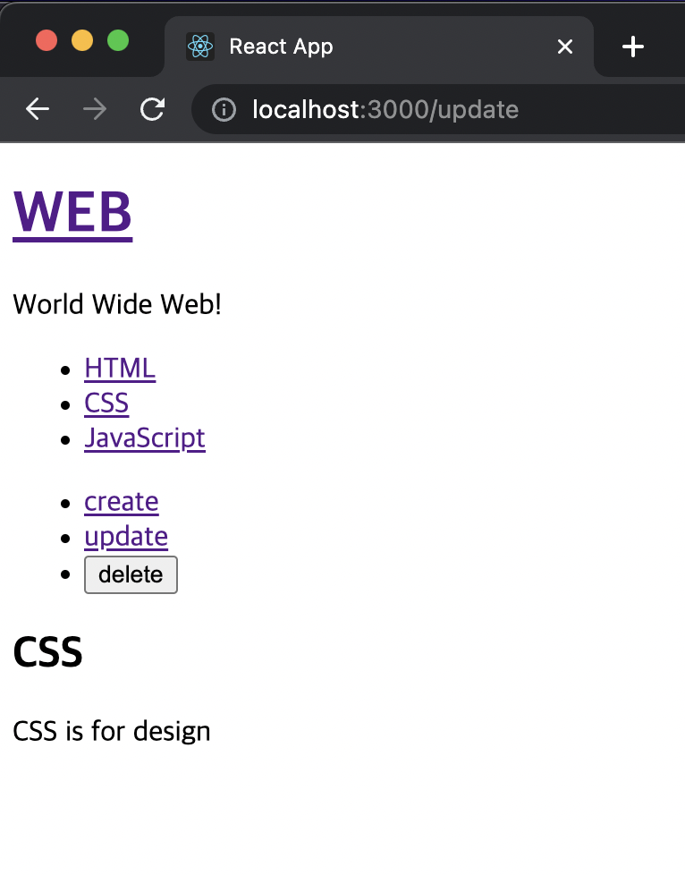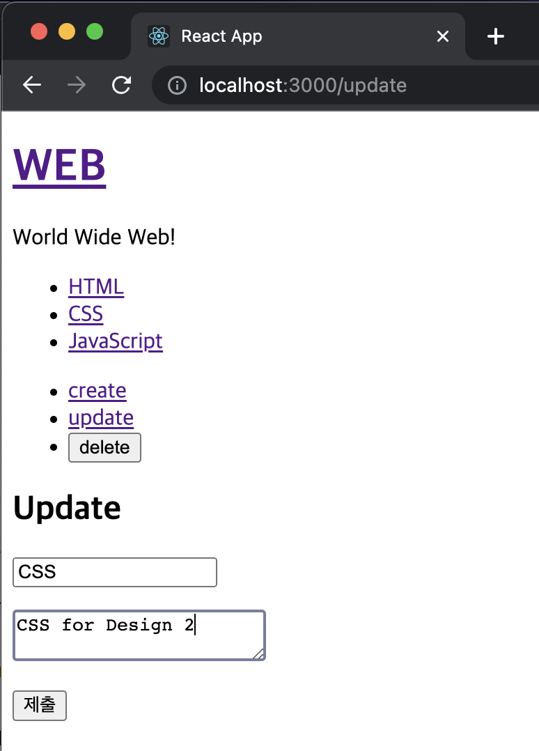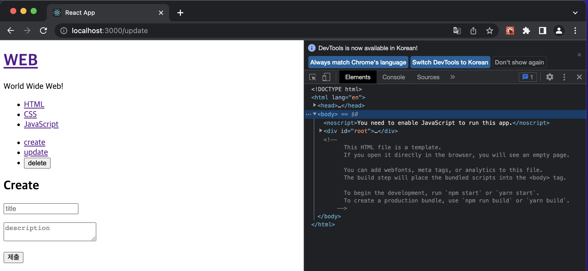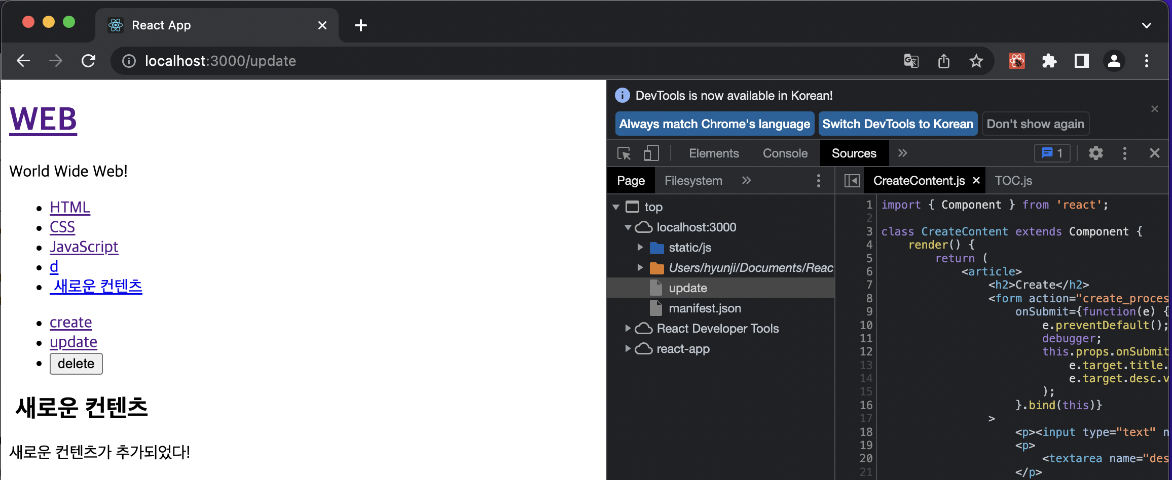 그리고 App.js 파일에서 _article 변수를 CreateContent 컴포넌트로 변경해준다.